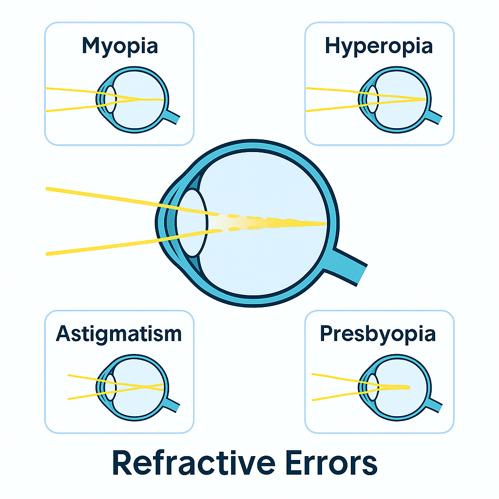We help children and adults see clearly by diagnosing and treating vision problems like Myopia, Hyperopia, Astigmatism, and Lazy Eye.